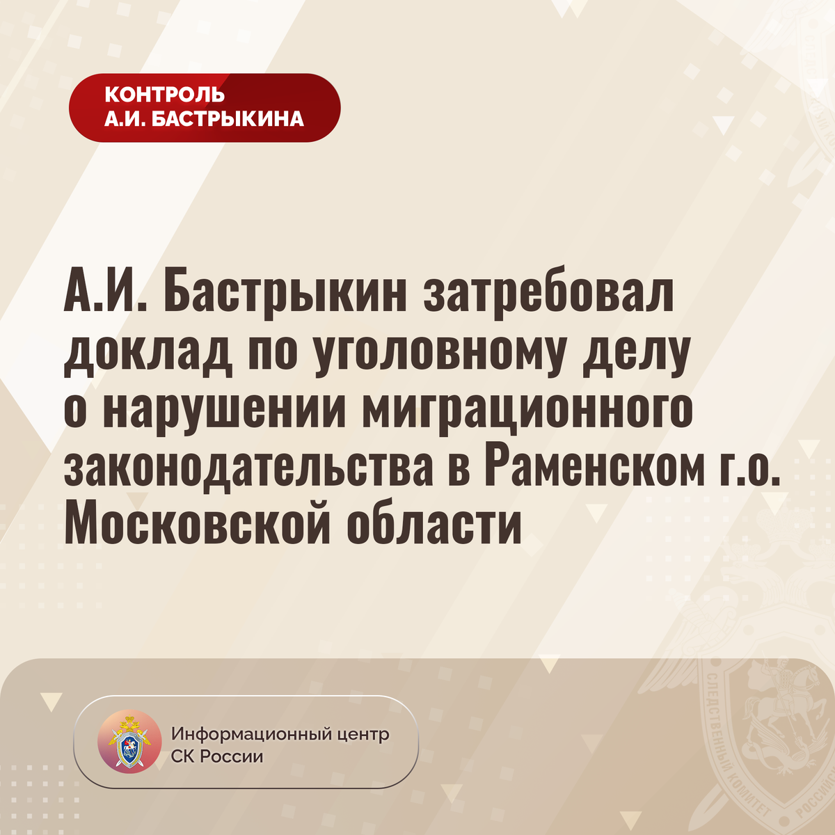 А.И. Бастрыкин затребовал доклад по уголовному делу о нарушении миграционного законодательства в Раменском г.о. Московской области