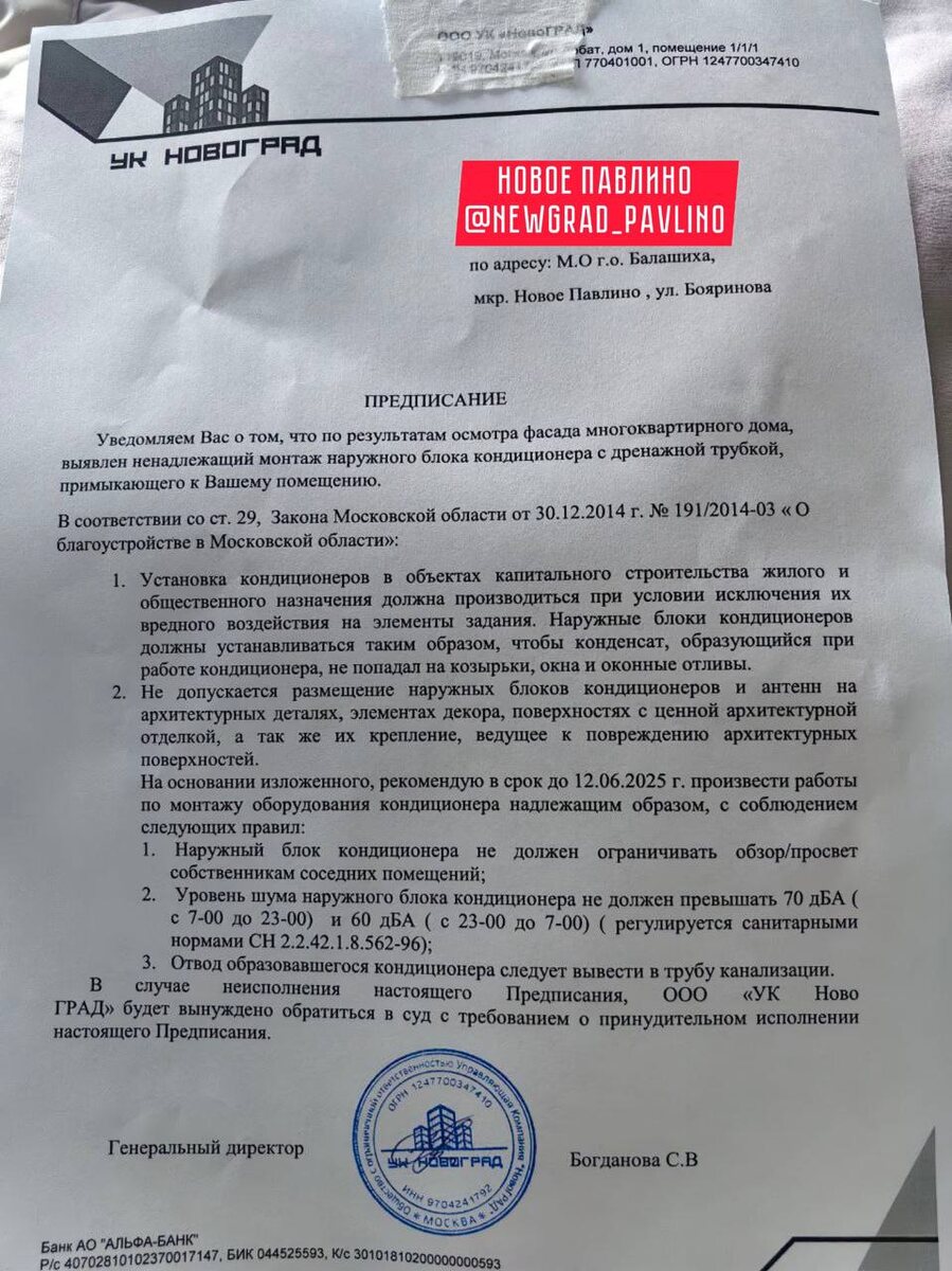 Кривым кондиционерам объявлена война. УК Новоград пытается навести порядок с кондиционерами. Многие устанавливают кондиционеры нарушая архитектурный вид, и совсем не заботятся о водоотведении. На этой неделе уже несколько человек получили предписание на устранение проблем. Устранять придется все самостоятельно. НОВОЕ ПАВЛИНО Прислать новость|Подписаться🎈