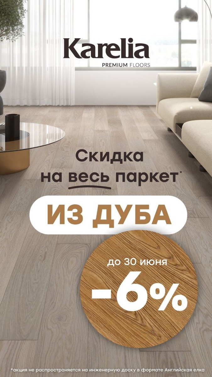 Скидки на паркетную доску из дуба Karelia и Polarwood. На сорт Duo цена ещё ниже. Подробности по телефону ☎ +7(812)951-48-68 📞 +7(911)925-19-18 ✔ Санкт-Петербург, Нейшлотский переулок, д.15 в