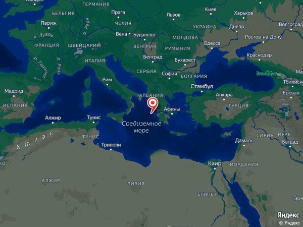 В 132 км к юго-западу от Патры, Греция.