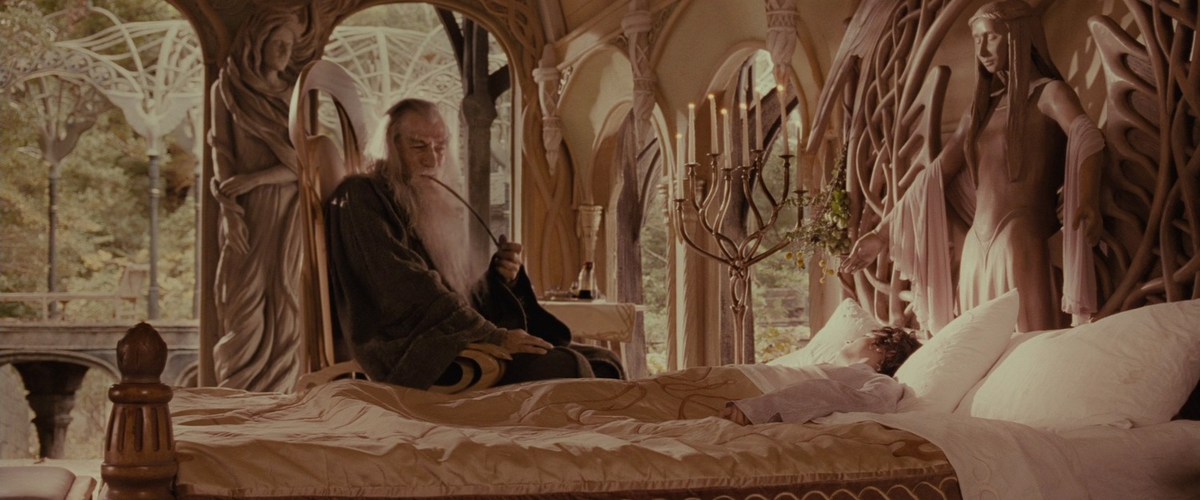 Назад После тягот сурового похода Фродо и Сэм набирались сил в Ривенделле, куда их принесли орлы. Неожиданно в город пришёл Гэндальф и первым делом навестил полуросликов. Хоббиты уже знали о том, что Маг жив, но личная встреча была очень радостной. Они рассказали друг другу, что пережили. Разговор о поведении Братства Фродо и Гэндальф провели наедине. – Я всё знаю, Фродо. – Почему ты их не наказал? – Это не выход. Тем более, потом они показали себя настоящими героями… Фродо, у меня к тебе ещё одно небольшое дело. Мы организуем торжественное мероприятие по случаю окончания войны, с коронацией, свадьбами… Вам с Сэмом надо быть там… – Нет! Я не могу их видеть после всего! – Фродо, в Средиземье начинается новая история. С чистого листа. У всех нас в жизни есть страницы, которыми мы не гордимся, но давай оставим их в прошлом. Миру не стоит знать, о том, что было. Для него – вы все Спасители. А потом ты и Сэм отправитесь в Шир. – Если только ради тебя, Гэндальф! – Спасибо, Фродо! – Мне надо