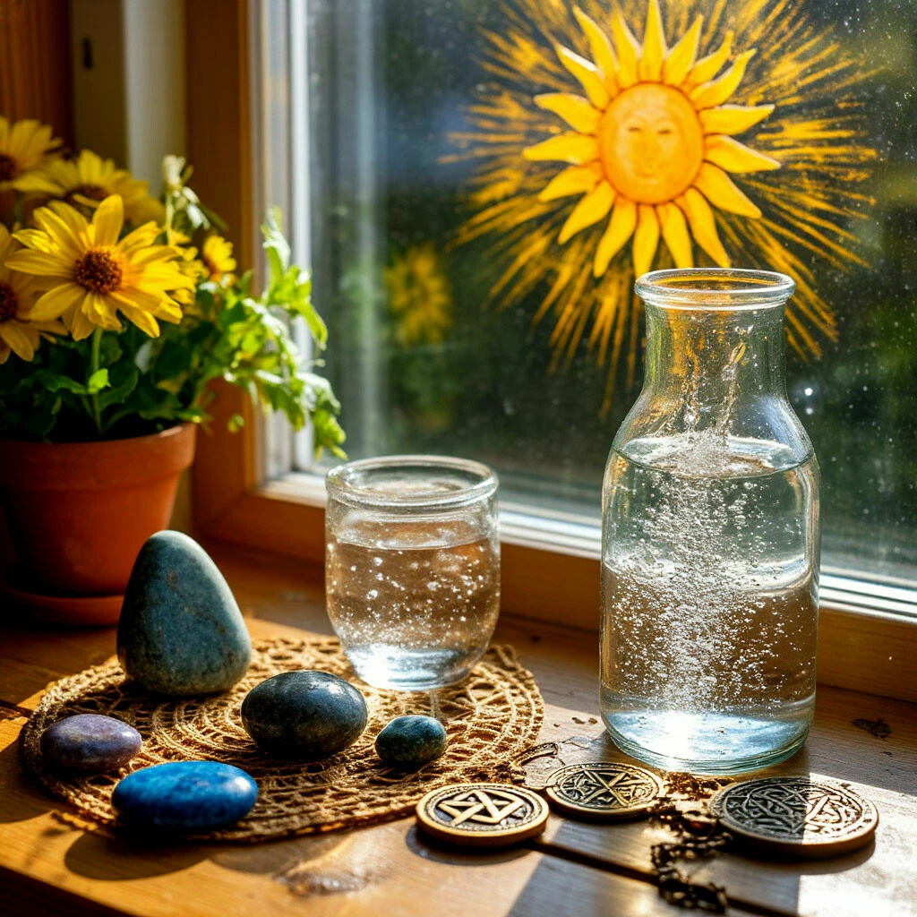 Налейте воду в стеклянную ёмкость, поставьте на солнце — это будет солнечная вода. Её можно пить, умываться или использовать в ритуалах весь год.
