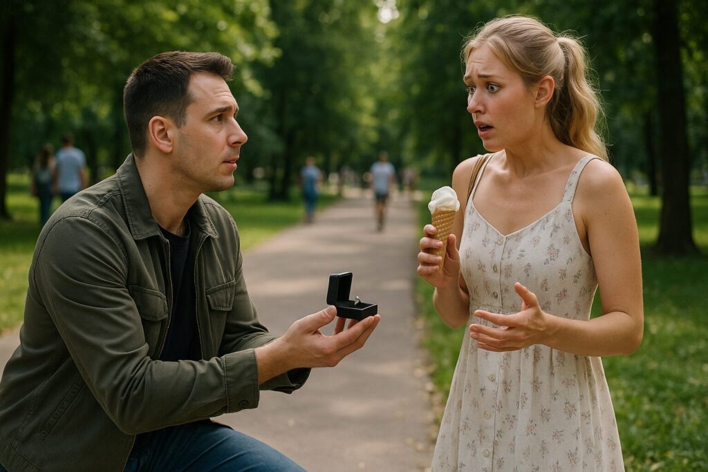 — Наташ, а что если я сделаю тебе предложение прямо сейчас? — Дима остановился посреди парка и достал из кармана маленькую коробочку.