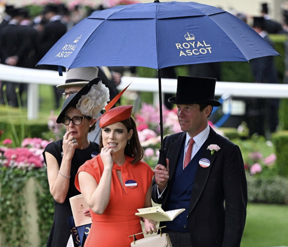 О чем и говорят лица немногочисленных членов Фирмы. Тут уж не до улыбок! Камилла и ее послушный Чарльз устроили странный выбор почетных гостей: долой арабских принцев и принцесс, хватит родственников! Экипажи заполнены... жокеями, их женами и тренерами по верховой езде. Такого еще не было на Аскоте. И королева Анна, придумавшая собственно Royal Ascot двести лет назад , вряд ли такое одобрила. В первом экипаже к Их Величествам присоединяются один из тренеров скаковых лошадей сэр Марк Прескотт и актриса Лиззи Спендер. Лиззи похожа в этом наряде на тест психиатра. Камилле очень идет белый. И всё же совершенно непонятна ее любовь к укороченным рукавам в таком возрасте. И да, висит строчка! Вот не должно так выглядеть на королеве любого возраста платье! Браслеты Ван Клифф мы изучили наизусть, в новом образе она опять с ними и еще с бриллиантовым браслетом предшественниц. Я поясню, почему я так переживаю, когда вижу на консорт эти фамильные драгоценности Виндзоров. Потому что впе