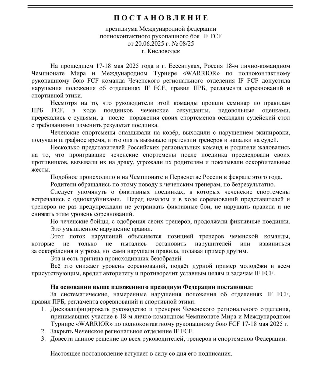 Постановление президиума IF FCF № 08/25 от 20.06.2025 г.