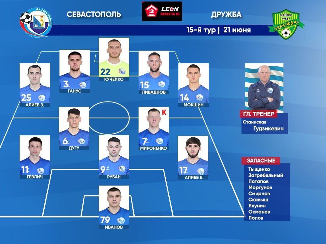 ⚽️ Смотрите в 19:00 матч ФК «Севастополь» против ФК «Дружба