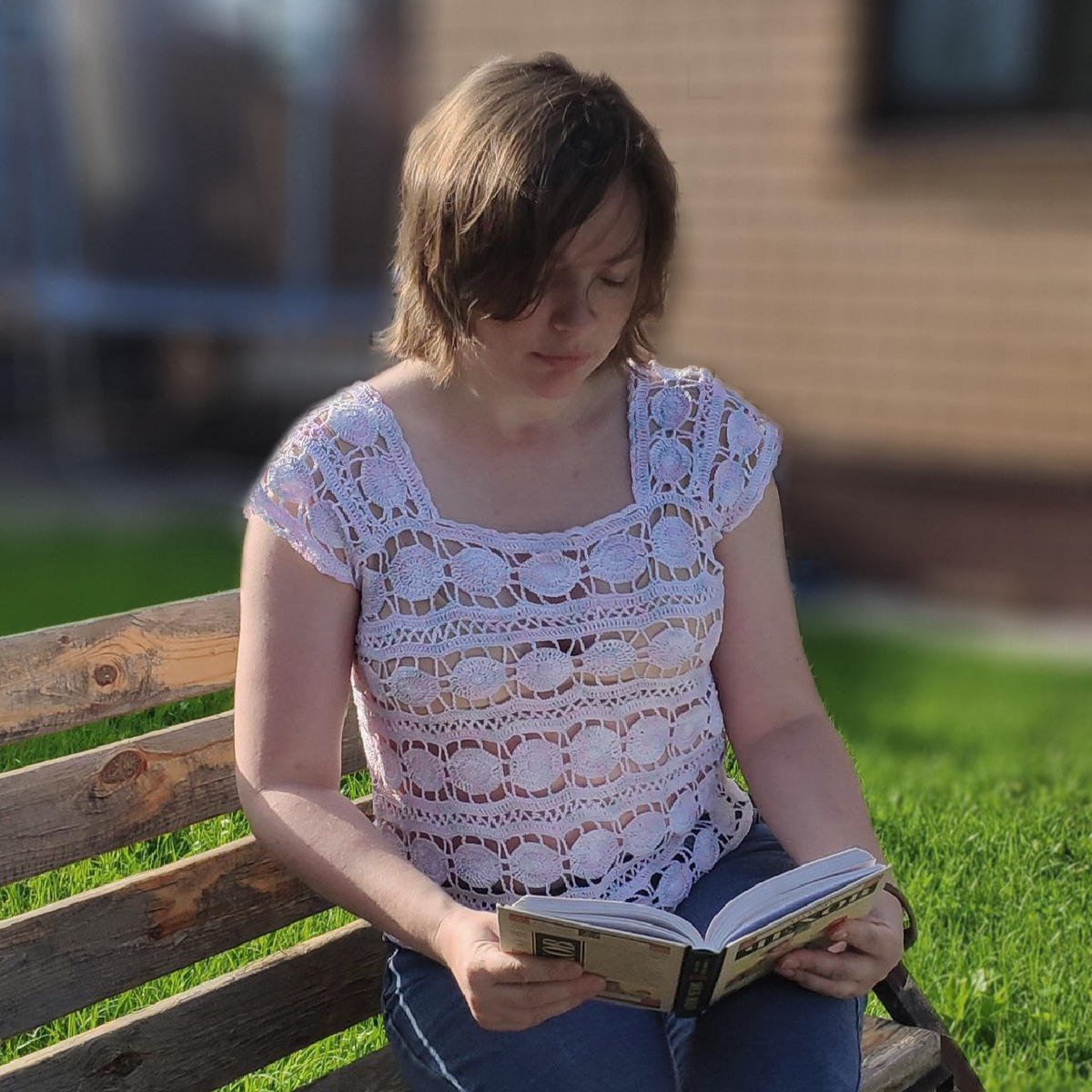 Сразу предупреждаю — модель не для новичков и не для тех, кто терпеть не может убирать кончики. А их будет… много. Очень много... Если ты из тех, кто нервничает от одного лишнего хвостика, дважды подумай, прежде чем браться за эту работу. Но если тебя не пугают сложности, ты обожаешь кропотливую работу и кайфуешь от сложных элементов — этот топ точно для тебя! Плюс этой модели в том, что она очень вариативна: элементы узора можно легко подстроить под себя, варьируя толщину пряжи, плотность вязания или диаметр мотивов. Каждый раз получится что-то новое. Сначала вяжем круги, которые будут основой всего топа. Прямо в процессе их сразу соединяем между собой в цепочку. Это и будет ширина изделия. Когда цепочка из круглых мотивов готова, делаем обвязку по верху и низу, чтобы мотивы выглядели как цельная полоска. На общей схеме эти полоски обозначены цифрой 2. Кстати, такая ажурная полоска — уже самодостаточный элемент: можно использовать как ремешок, декоративную вставку и даже пояс. П