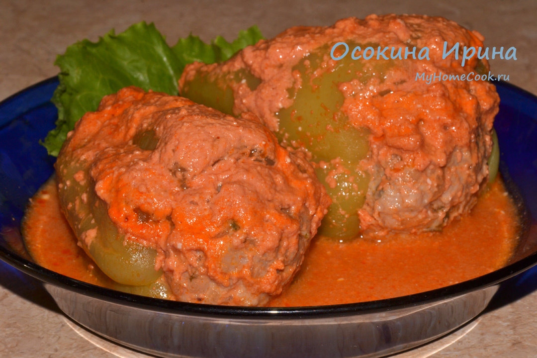Супруг очень любит фаршированные перцы, поэтому периодически его балую, а чтобы не повторяться, варьирую начинки. Сегодня такой вариант: в миску сложила 1 банку промытой консервированной фасоли без заливки, грубо помяла толкушкой, добавила 0,5 кг свиного фарша, 1 очищенное натёртое на крупной тёрке зелёное яблоко и горсть резаной кинзы, посолила, поперчила и хорошенько промешала. У пяти перцев вырезала плодоножку, удалила перегородки и семена, сложила в миску, залила кипятком и оставила на 5 минут, затем кипяток слила, а перцы охладила - так перцы становятся более пластичным и вмещают больше начинки. Перцы плотно набила подготовленным фаршем, уложила в сотейник, залила смесью 1/2 стакана сметаны 1/2 стакана кетчупа, накрыла крышкой и тушила на небольшом огне в течение 25 минут. Смачнейшие перчики получились! Мы прямо погурманили)