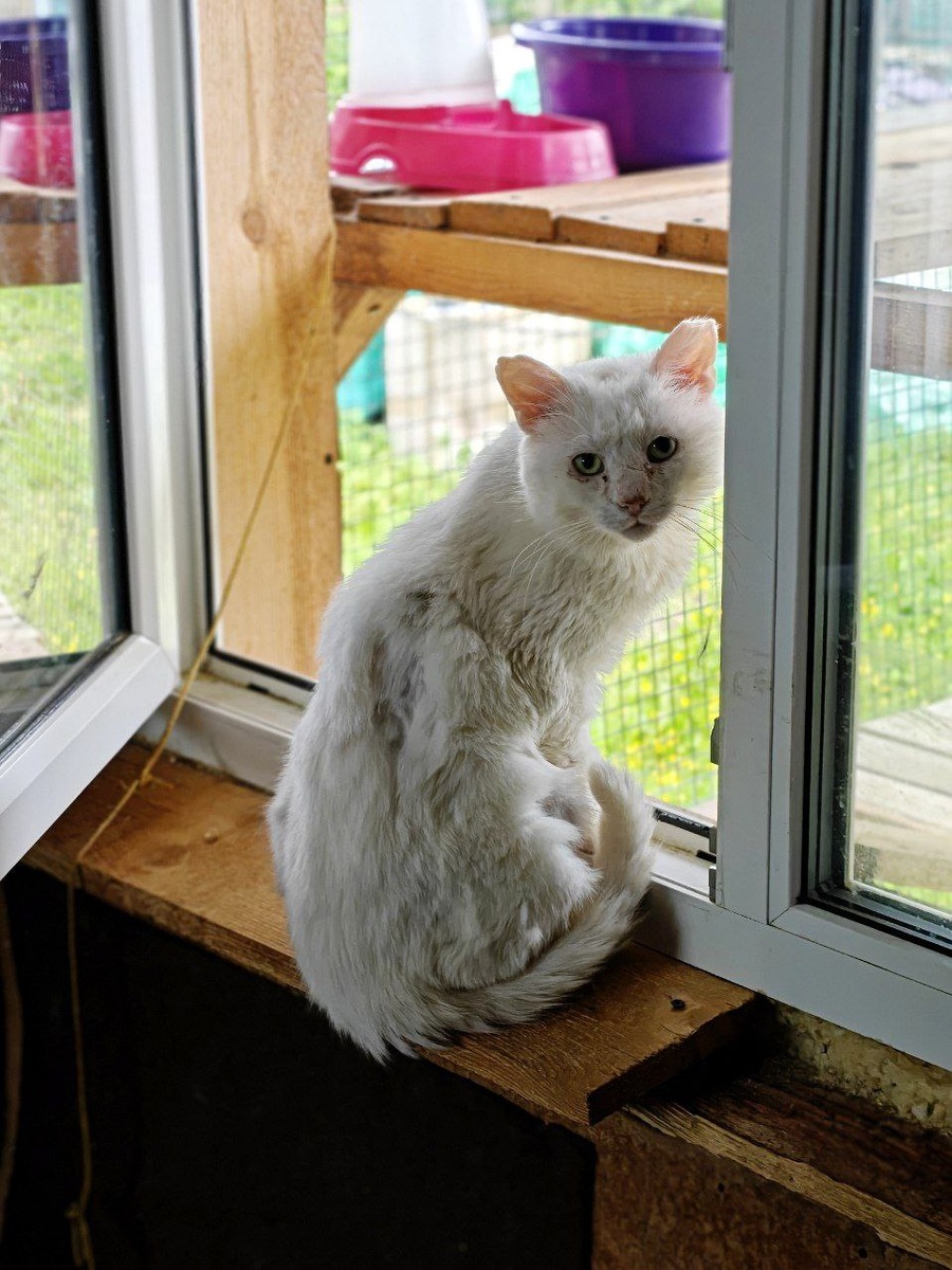 Я дотронулась до его спины и он мне муркнул в ответ, как нормальный кот ❤️ сейчас сидит, смотрит на сорок и дождик