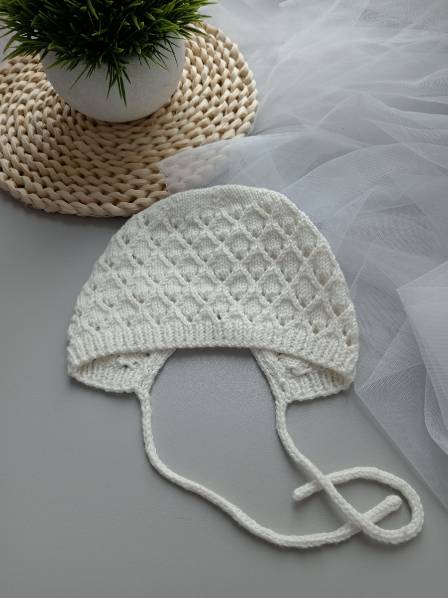 Про ажурный чепчик спицами, который я вязала на выписку.