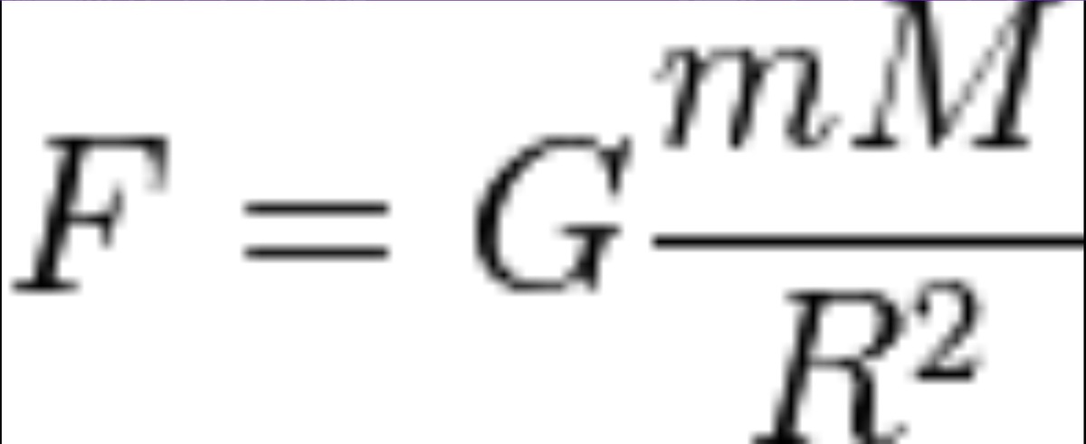 Где F - сила гравитации, G – гравитационная постоянная – универсальный коэфицент отвечающий за силу притяжения между элементами материи. Он установлен Богом и познан Ньютоном, m – первый элемент материи, M – второй элемент материи, R – расстояние между в метрах.