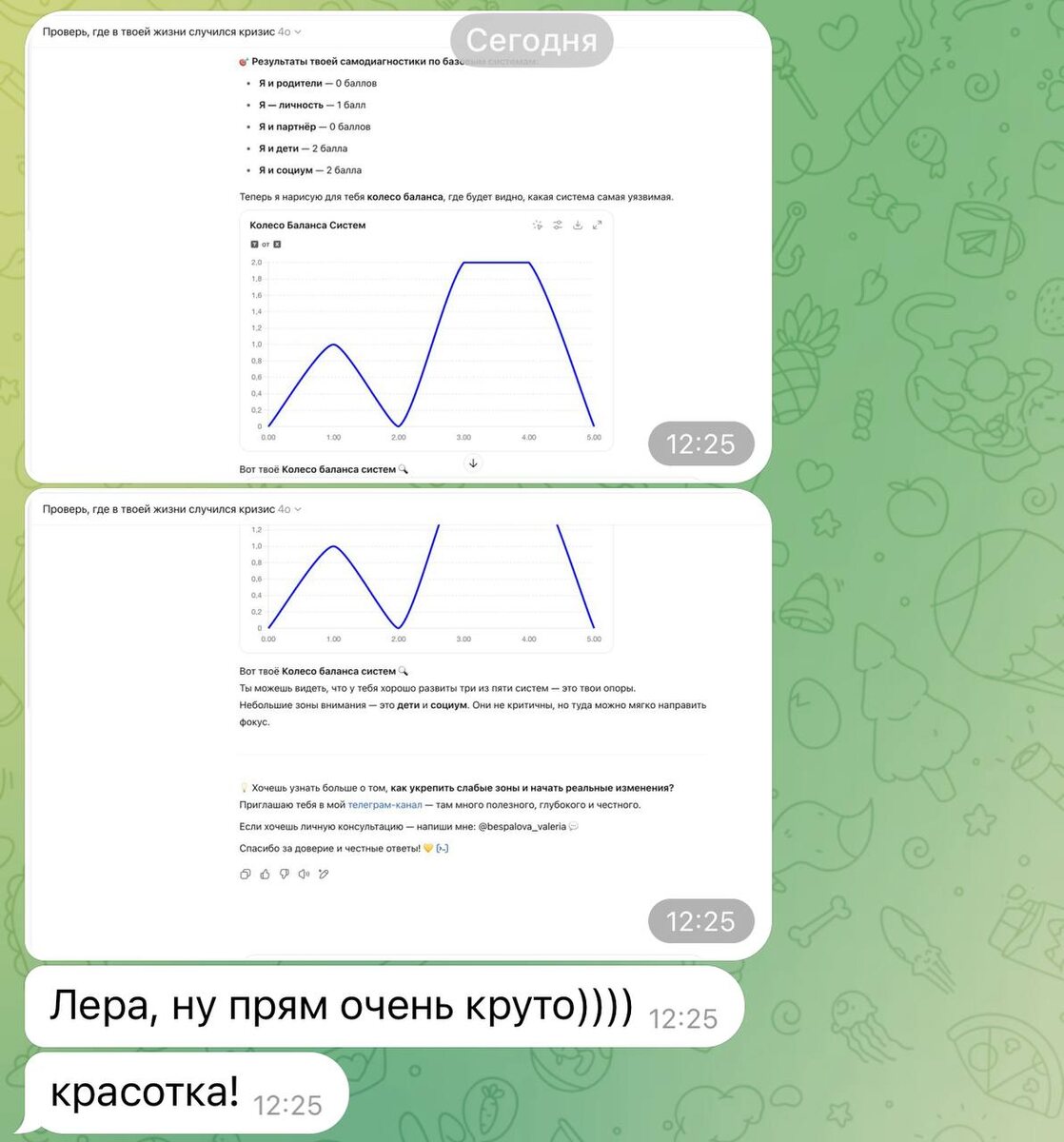 Так что да.Я сделала бот. С вопросами, которые бьют в точку.