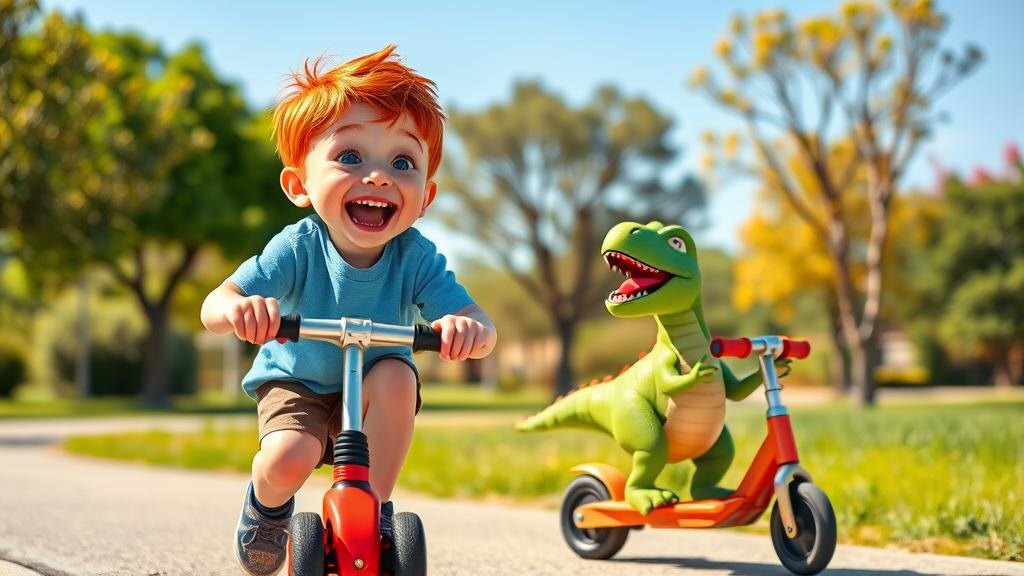 Лёва и Дино решили устроить гонки на самокатах! 🛴