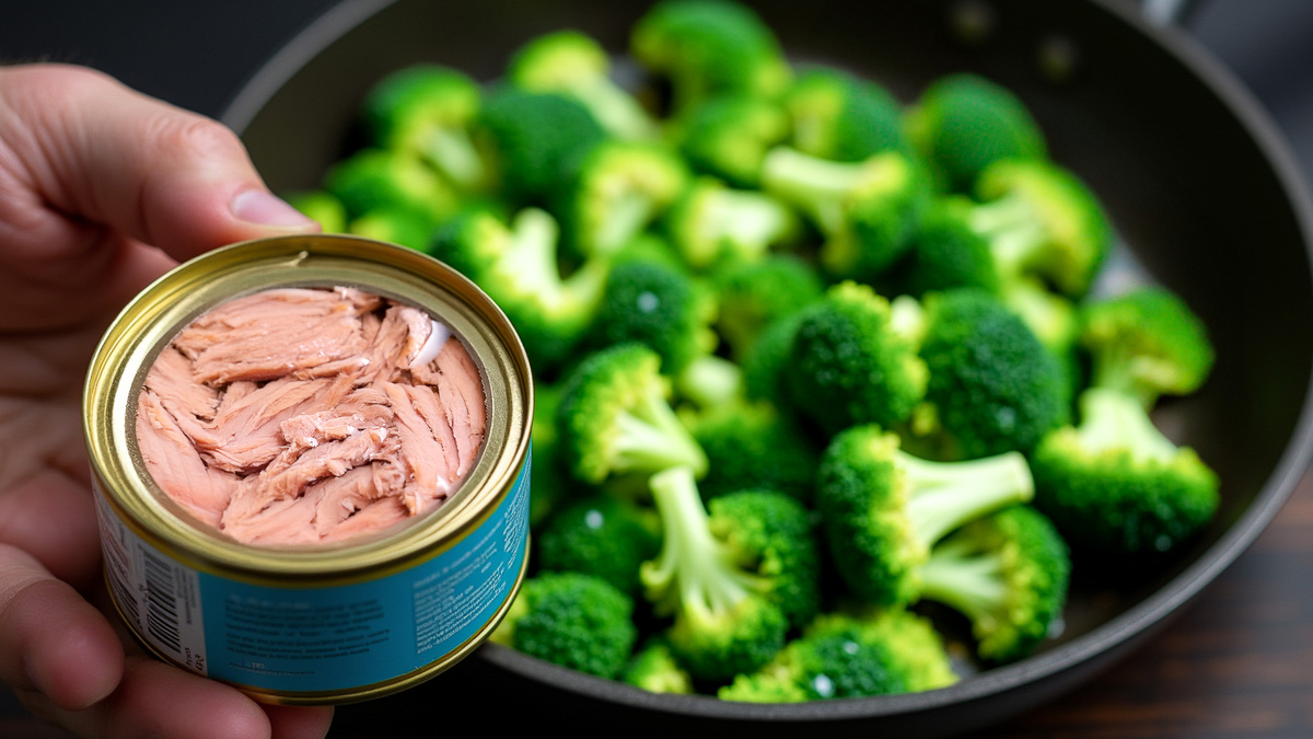 История на разогрев. Как-то вечером я вернулся с пробежки: в холодильнике — один тунец, в овощном ящике — уставшая головка брокколи. Уже тянулся к телефону заказать пиццу, но спорт подтолкнул к подвигу: сделать ужин, который не угробит весь бег. С тех пор этот зелёно-рыбный пирог спасает меня, когда времени в обрез, а хочется гордиться ужином, а не картонной коробкой. Сначала беру 500 г брокколи, делю их на соцветия и бросаю в кастрюлю с подсоленной водой и 1 г соды. Трюк старый как студенческое общежитие: сода держит цвет, а холодная ванна после варки — хруст. Через 3 мин соцветия уже отдыхают в дуршлаге и выглядят так, будто их никто не варил. Пока они стекают, в миске смешиваю 3 яйца, 1,5 ст. л. овсяных хлопьев, соль и перец. Даю хлопьям 5 мин настояться — пусть набухнут и подружатся с белком. Брокколи мельчу ножом, открываю одну банку консервированного тунца, сливаю лишнее масло и тоже рублю, чтобы кусочки распределились равномерно. Вливаю яичную смесь и осторожно перемешиваю — мас