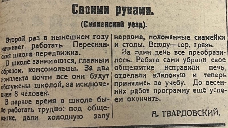 ✏️ Первые заметки Александра Твардовского в смоленских газетах