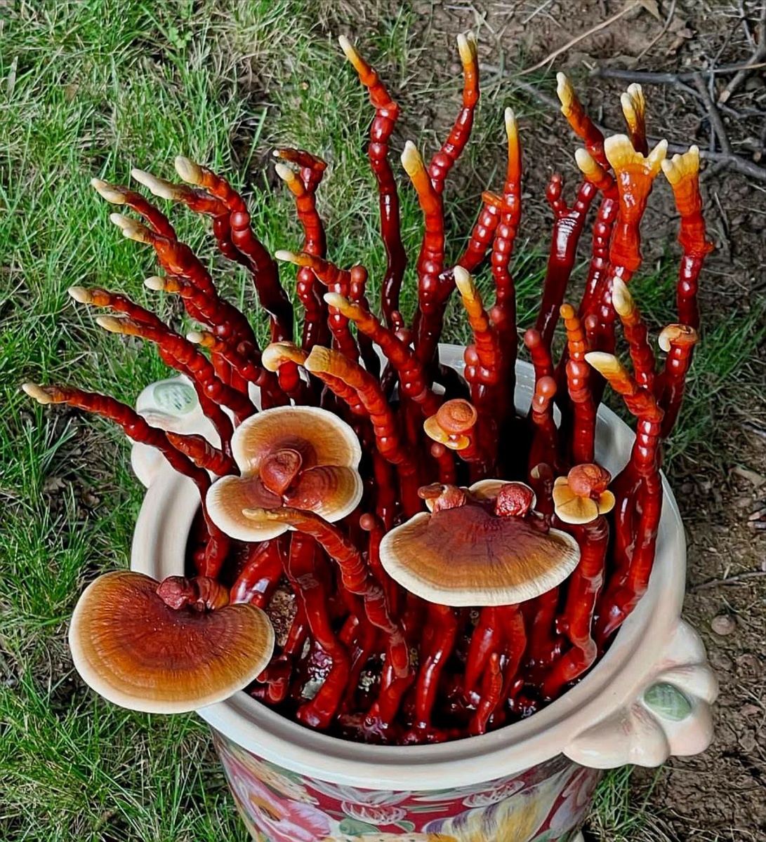 Ничего необычного, просто кто-то выращивает свежие, домашние грибы Рейши в большом цветочном горшке 🤗🍄🔥