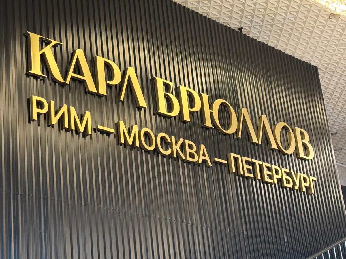 В экспозиции новой выставки три главных раздела — Рим, Москва и Петербург. Это места силы художника, которые сформировали его эстетическое и личное мировоззрение. В тотально темном пространстве выставки, где подсвечены только картины в шикарных резных золотых рамах, эти зоны выделены цветными полосками на полу и соответствующей информацией на стенах. (Классную задумку сделали с пояснениями и искусствоведческими задачками для особо внимательных и любознательных) В отдельных пространствах — графические и живописные эскизы росписей Исаакиевского собора, этюды к масштабному полотну "Последний день Помпеи" и ролик о его создании с эффектом присутствия внутри шедевра. Большие полотна Карла Павловича – “Последний день Помпеи” и “Осаду Пскова” повесили в торцах аллей 🔥. Удивительное сияние и величественность картин потрясает. Интересный факт, что на картине «Последний день Помпеи» можно найти и автопортрет художника ( В левой части картины, чуть ниже архитектурного пейзажа, его голова накр