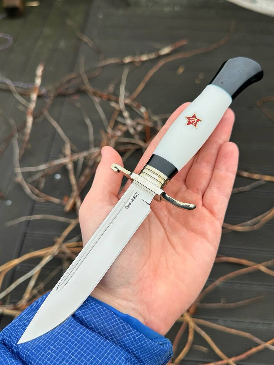 В единственном экземпляре Реплика Финка НКВД из топовой стали S390. Сталь всех дольше держит заточку и агрессивный рез. Рукоять и выполнена из акрила белого и черного с красной звездой. Нож заточен в бритву. Твердость клинка (HRC): 70 Цена за нож: 36.197 рублей, со скидкой: 28.957 рублей. В комплекте идут ножны из натуральной кожи. Можем сделать формованные ножны +8000 рублей. Для заказа писать на @Nazarklinokbot или по тел +79101343831 WhatsApp/Viber