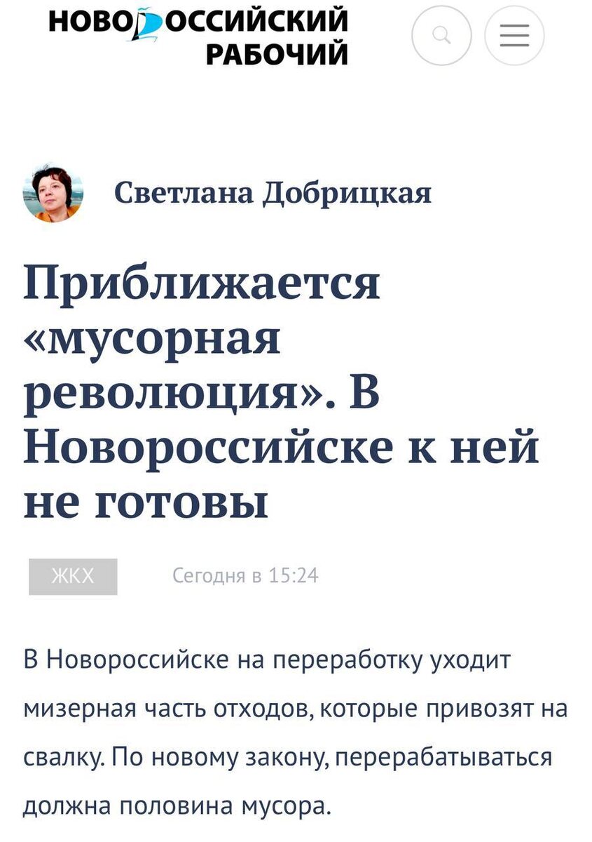 Вышел еще один материал от «Новороссийского рабочего»: «Приближается «мусорная революция». В Новороссийске к ней не готовы