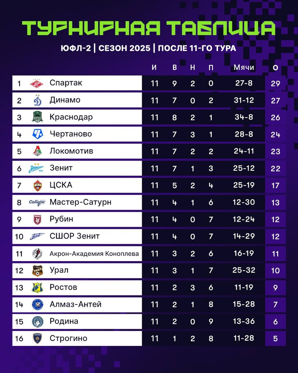 «Динамо» подвинуло «Краснодар» со второй строчки ЮФЛ-2 🔝