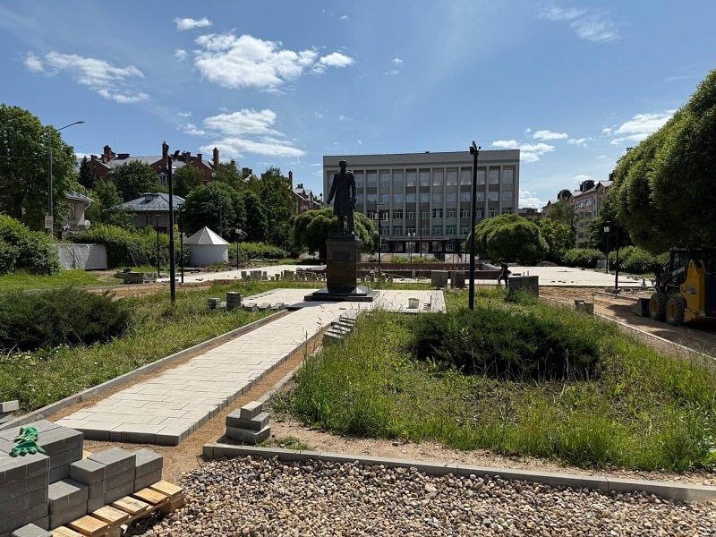 Александр Новиков рассказал, что в сквере напротив учебного заведения подрядчик активно занимается укладкой нового покрытия.