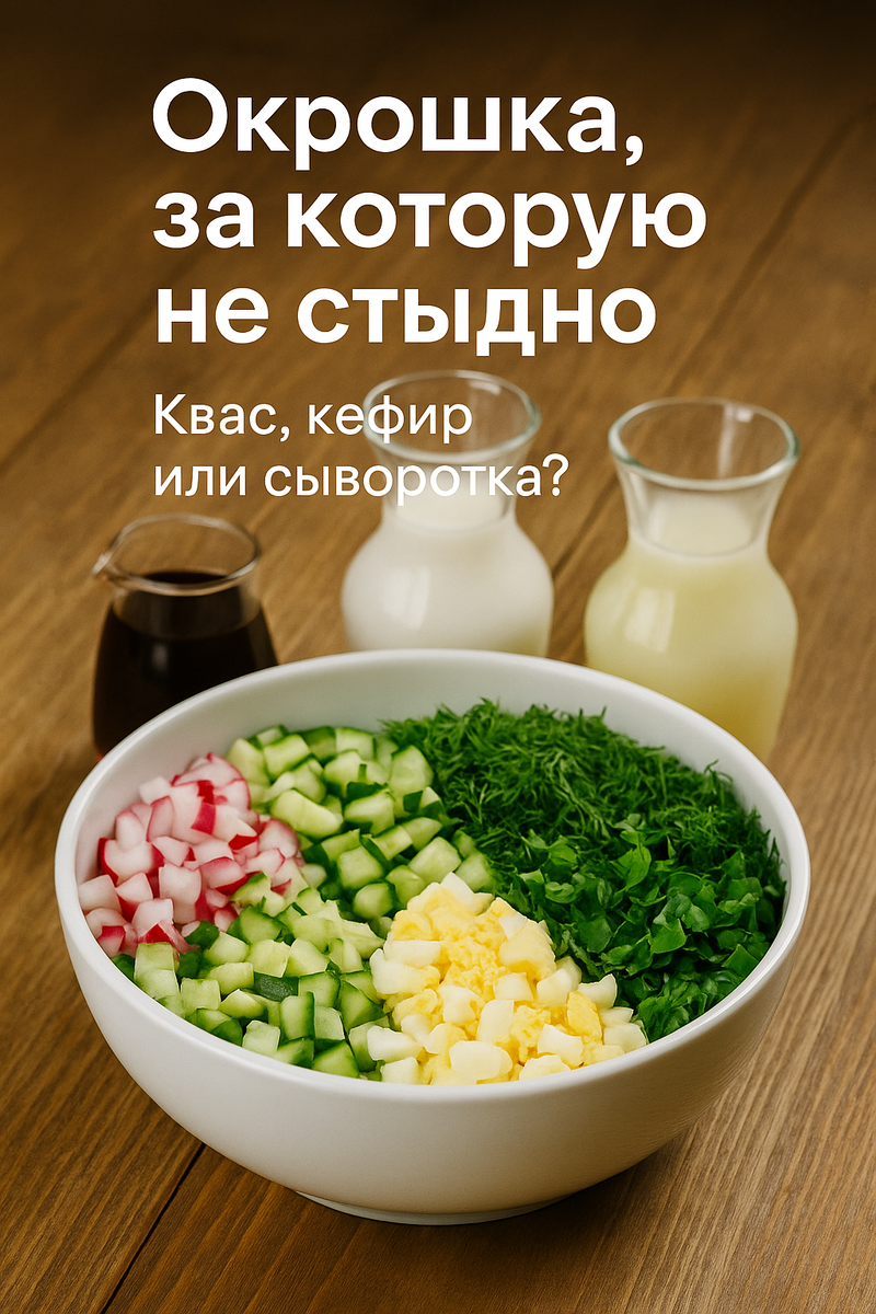 А я просто хочу, чтобы она была вкусной. И холодной. И не слиплась. Так что вот: честный рецепт, без идеологий. Только вкус, текстура и — самое главное — удовольствие. Картошку можно добавлять — но лучше отдельно, как гарнир. Окрошка любит текстуры, а не крахмалистую кашу. 1. Квас (классика)