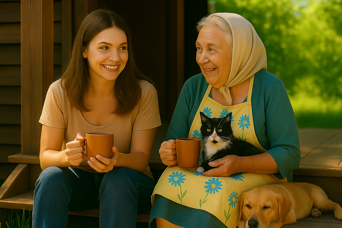 Утро в деревне началось с солнца, запаха мокрой древесины и бабушкиного кашля из-за двери. Варя проснулась от звона кружки и звука, который бабушка называла «вдохновением» — когда открывается калитка, и в неё вкатывается день.