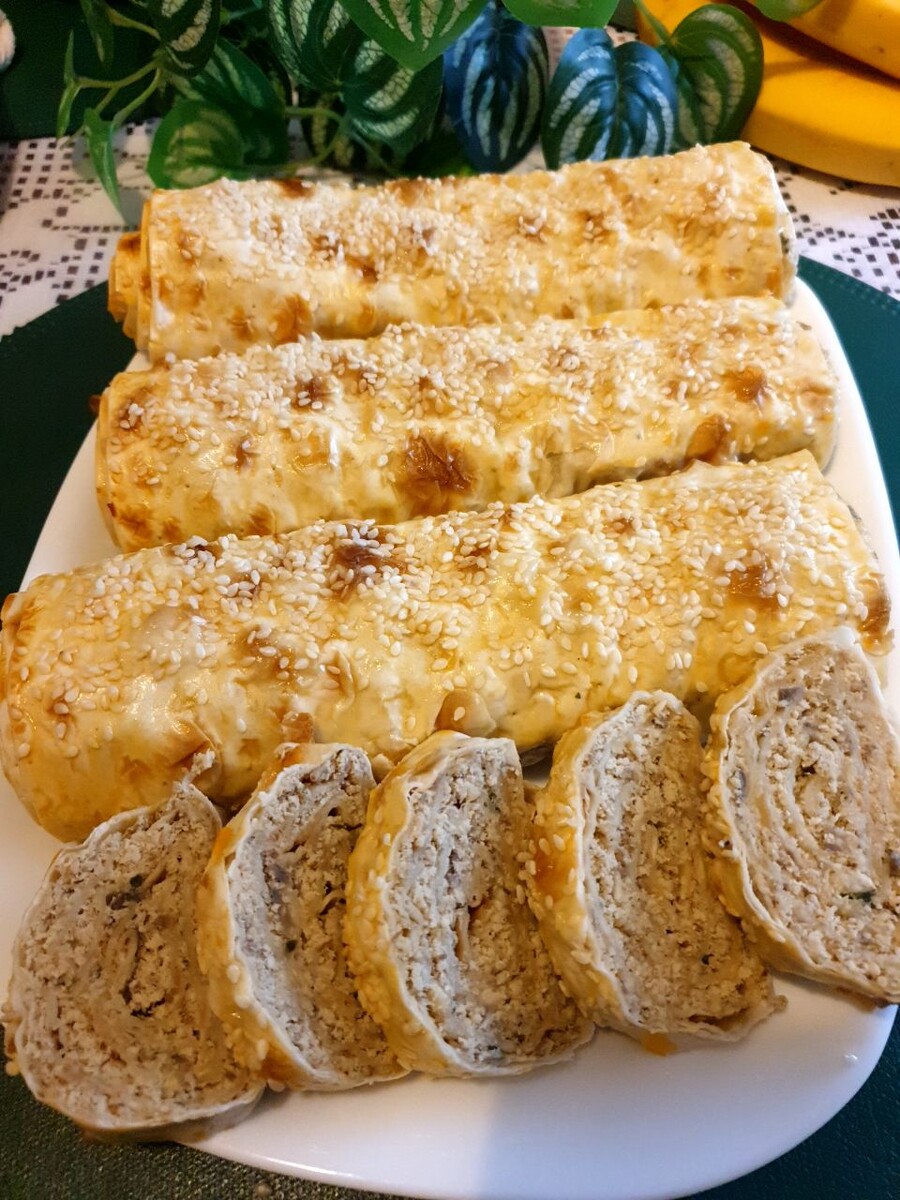 Всем здравствуйте! Если нужно быстро приготовить обед или закуску, то этот рецепт для вас. Просто удивительный рецепт. Это быстро, просто и легко. Мясной фарш делает блюдо сытным и ароматным. Плавленый сыр добавляет кремовую текстуру и добавляет мягкость вкусу, а шампиньоны придают блюду изысканность и тонкий оттенок. Этот рулет с золотистой корочкой можно подавать в качестве закуски на праздничный стол, а начинку использовать совершенно разную по вкусу. Обязательно приготовьте этот «сытный ролл».😊