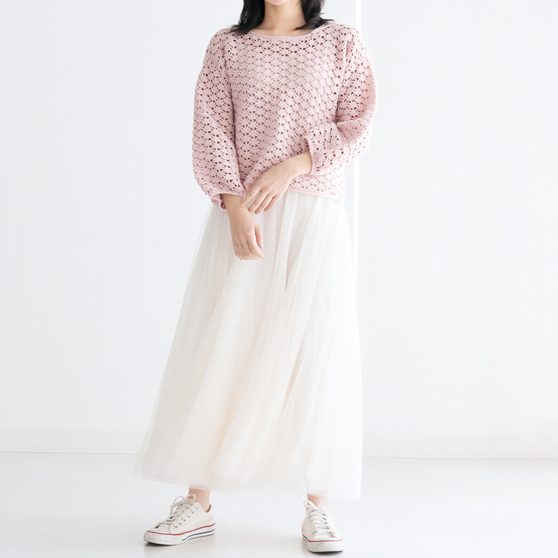 схематично. Вроде бы всё понятно, но понятно, что ничего не понятно)) Так описывается в журнале: Этот пуловер создаёт стильный образ, который выводит его на новый уровень. Пуловер связан крючком из пряжи с нежным блеском. Арочный ажурный узор и рукава-фонарики придают ему милый и нежный вид. Длина короткая, поэтому сочетайте его с длинной юбкой или широкими брюками, чтобы подчеркнуть свой стиль! Узор несложный, поэтому легко изменить под свой размер. Фото большого размера, можно рассмотреть узор поближе. Фото кофтёнки поближе: Итак, ПРЯЖА: 95% хлопок/5% полиэстер, 40 гр./93 м. КРЮЧОК: №3. А вот так выглядит оригинальная пряжа, из которой связана кофтёнка: * Размеры готового изделия: ширина — 98 см, длина рукавов — 37,5 см, длина изделия — 49 см. * Плотность вязания: квадрат 10х10 см = 22,5 петель и 19 рядов. Узор спинки, серым выделен рап