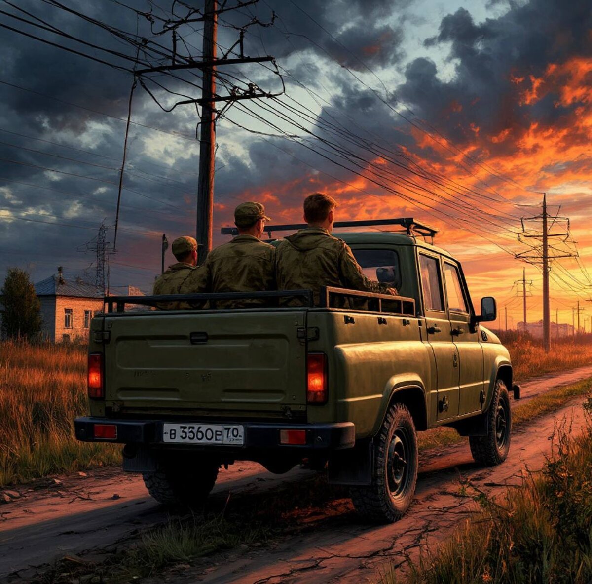 Мы погрузились в пикап (12 человек) и поехали к линии соприкосновения. Тех, кто был в кузове, предупредили пригибать головы и не высовываться выше кабины. По дороге поняли почему: проезжали через так называемый «железный лес» — местность с частыми ЛЭП, где на ходу можно было задеть головой провода.