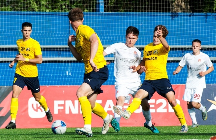 И вошел в шестерку команд, которые будут претендовать на медали на втором этапе сезона. Сегодня в рамках 15-го тура первенства в группе 1 дивизиона Б Второй лиги ФНЛ СК «Астрахань» принимал на своем поле «Ростов-2». За короткое – всего второй сезон – время очного взаимоотношения дончане уже прослыли неприятными оппонентами для волжан: три матча – три поражения, да еще с убийственной разницей - 2:10. Вдобавок дубль «премьерного» клуба нынче заявился в Астрахань в качестве одного из лидеров группы. Так что для подопечных Андраника Бабаяна этот поединок ожидался очень не простым. Приезжие сразу включили скорости и заиграли в атакующем ключе. Хозяева приняли вызов, и в первой же своей атаке едва не открыли счет: мчавшийся по правому флангу Данила Золоторенко сделал что-то вроде навеса к дальней штанге, а вышел коварный «парашют» за спину голкипера дончан Данила Рязанова, но пятнистый, угодив в стойку, вылетел в поле. Игра быстро пошла на встречных курсах. Острее она получалось у «горожан»,
