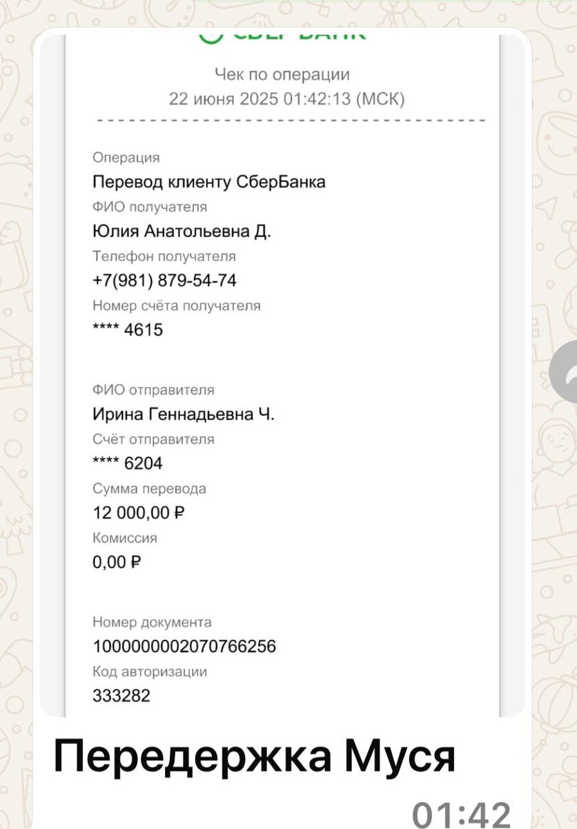 Перевели Юле за передержку Муси за две недели 🚩
