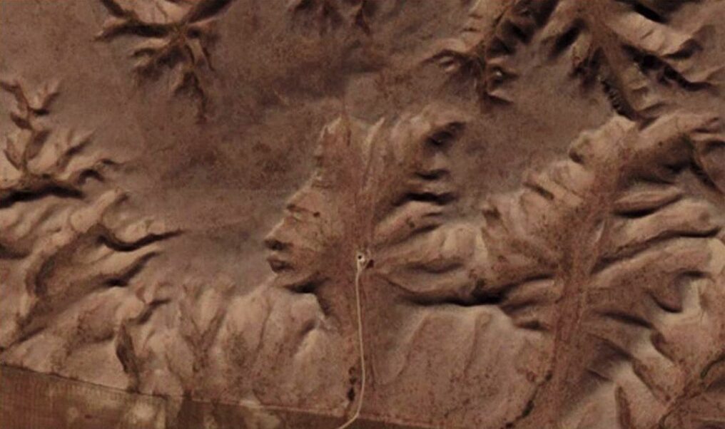 Интересно, что "наушники" индейца — это вовсе не артефакт древних цивилизаций, а современная дорога к нефтяной скважине. Но совпадение поразительное. Хотя геологи уверяют, что облик головы — чистая игра эрозии, уфологи не унимаются: дескать, не могли ли "братья по разуму" оставить человечеству послание в такой форме?