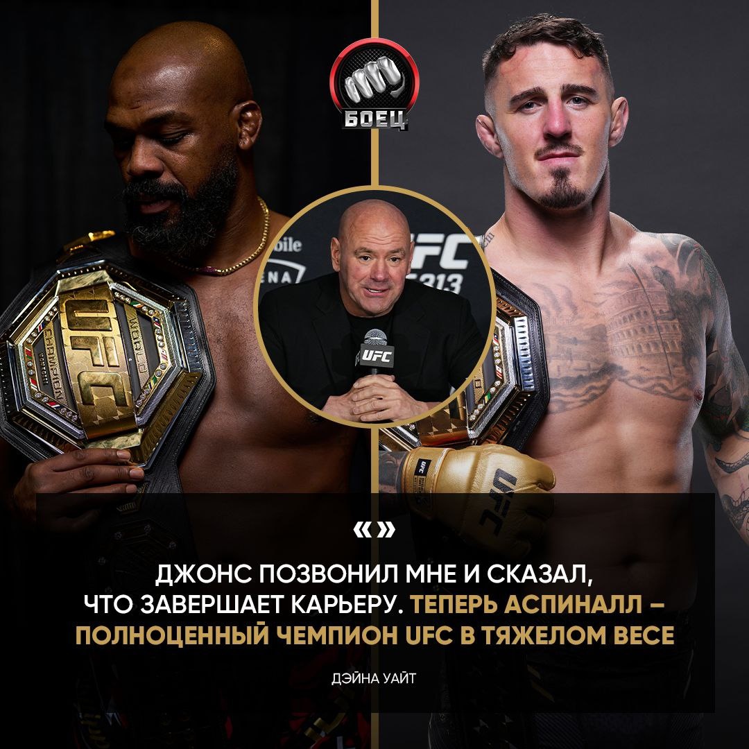 ⚡️ ВАЖНО: Джонс оставил титул и ушел на пенсию. Об этом сообщил Дэйна Уайт. Полноценный чемпион UFC в тяжелом весе – Аспинэлл 🏆