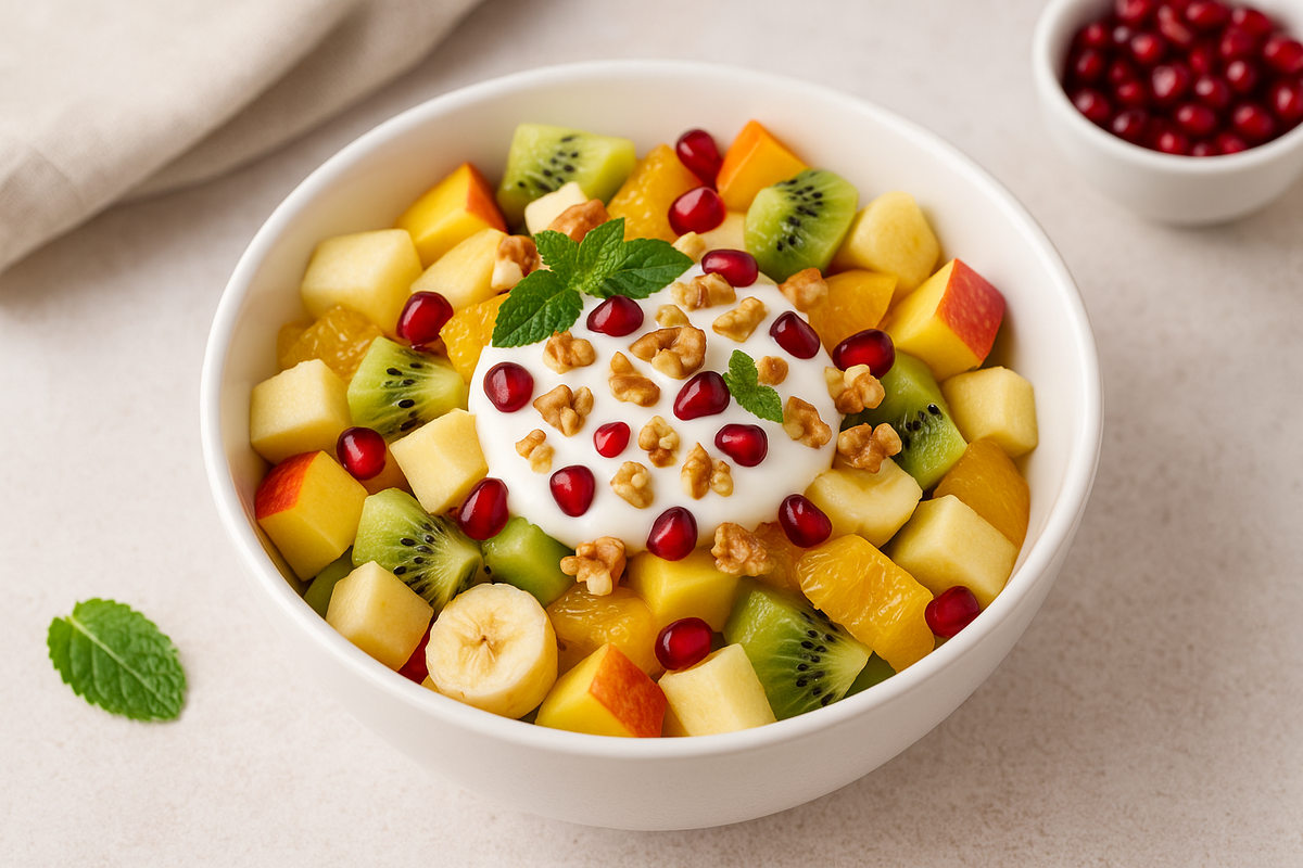 Хочется чего-то свежего, сладкого, но без вреда для фигуры? Этот простой фруктовый салат — отличный выбор. Он готовится всего за 10 минут, а удовольствия и пользы в нём — с избытком! 1. Подготовка: Вымойте и очистите фрукты. Яблоко нарежьте кубиками, киви и банан — кружочками или дольками. Апельсин разделите на кусочки, убрав все белые плёнки. 2. Сборка: Сложите всё в глубокую миску. Аккуратно перемешайте, стараясь не раздавить мягкие фрукты. 3. Заправка: Добавьте ложку-другую греческого йогурта. Хотите послаще — капните немного мёда или сиропа топинамбура. 4. Финальный штрих: Посыпьте салат дроблёными орешками, украсьте мятой или зернами граната — по желанию. Такой салат вкуснее всего сразу после приготовления — фрукты остаются свежими, а йогурт не даёт им потемнеть. Отличный вариант для завтрака, перекуса или лёгкого десерта. Сохраняйте рецепт и делитесь с друзьями — простой и вкусный фруктовый салат никогда не подведёт! 🥝🍌🍊