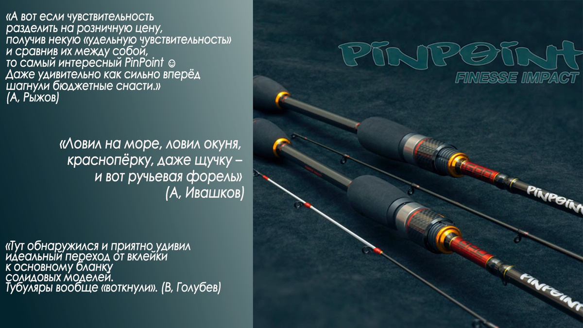 И, главное! Упругая эластичность всех моделей PinPoint позволяет выполнять достойный заброс легчайших приманок – и успешно побороться с приличного размера рыбой.