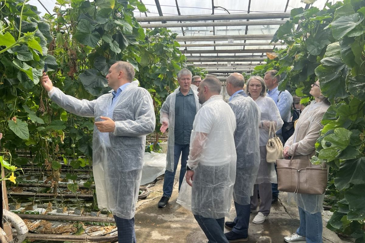 В рамках визита на одно из старейших сельскохозяйственных предприятий Владимирской области участники совещания посетили территорию комплекса, где выращивают огурцы, томаты, зелень, малину и цветочные культуры. Ознакомились с проблематикой использования старых теплиц и технологическими преимуществами новых модернизированных корпусов.