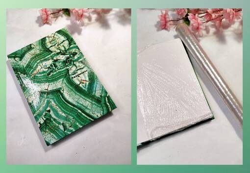 В этой статье расскажу, как необычно и быстро сделать декор блокнота. Для работы понадобятся следующие материалы: Готовый блокнот. Мелкозернистая наждачная бумага, кисти, горячий пистолет, пленка пищевая, пекарская бумага. Грунт или краска белая, лак, акриловые краски умбра жженая и оранжевая. Распечатка или декупажная карта, салфетка для декупажа Клей ПВА, клей «Момент» Стабилизированный мох, фигурки грибов и белочки (отливки из жидкого пластика). Для того чтобы защитить страницы блокнота от окрашивания, я их оборачиваю пищевой пленкой. Поверхность блокнота необходимо слегка ошкурить мелкозернистой наждачной бумагой. Грунтом окрашиваю место под распечатку. Остальную часть блокнота грунтую лаком. Приклеиваю распечатку на клей ПВА. После высыхания покрываю несколькими слоями лака, давая каждому слою время просохнуть. Лакирую до тех пор, пока не устроит результат. На бумаге произвольно я рисую выкройку отверстия для дупла. Затем вырезаю середину. Переношу выкройку на пекарскую бумагу и о