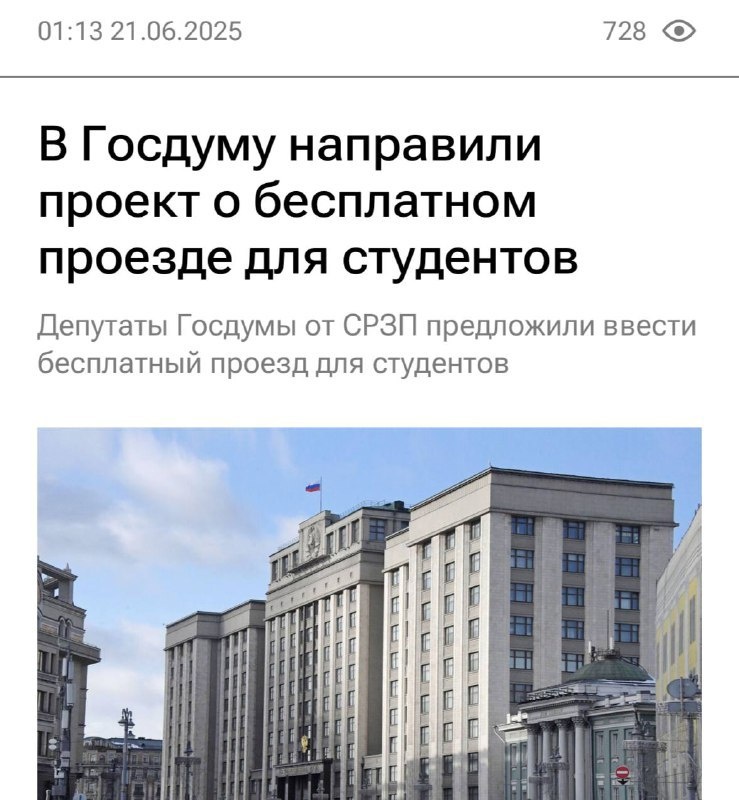 Студентам по всей стране могут завезти бесплатный проезд — сейчас халява работает только в Москве, области и Краснодарском крае. Депутаты предложили сделать проезд фри для всех учащихся колледжей и вузов во всех регионах, на любом транспорте — автобусах, метро, электричках и т.д. Если вдруг учишься — кидай инфу однокурсникам, пусть кайфуют ❤️ Подробнее: https://hard-tm.su/threads/97087/ 🕹HARD-TM — Подписаться