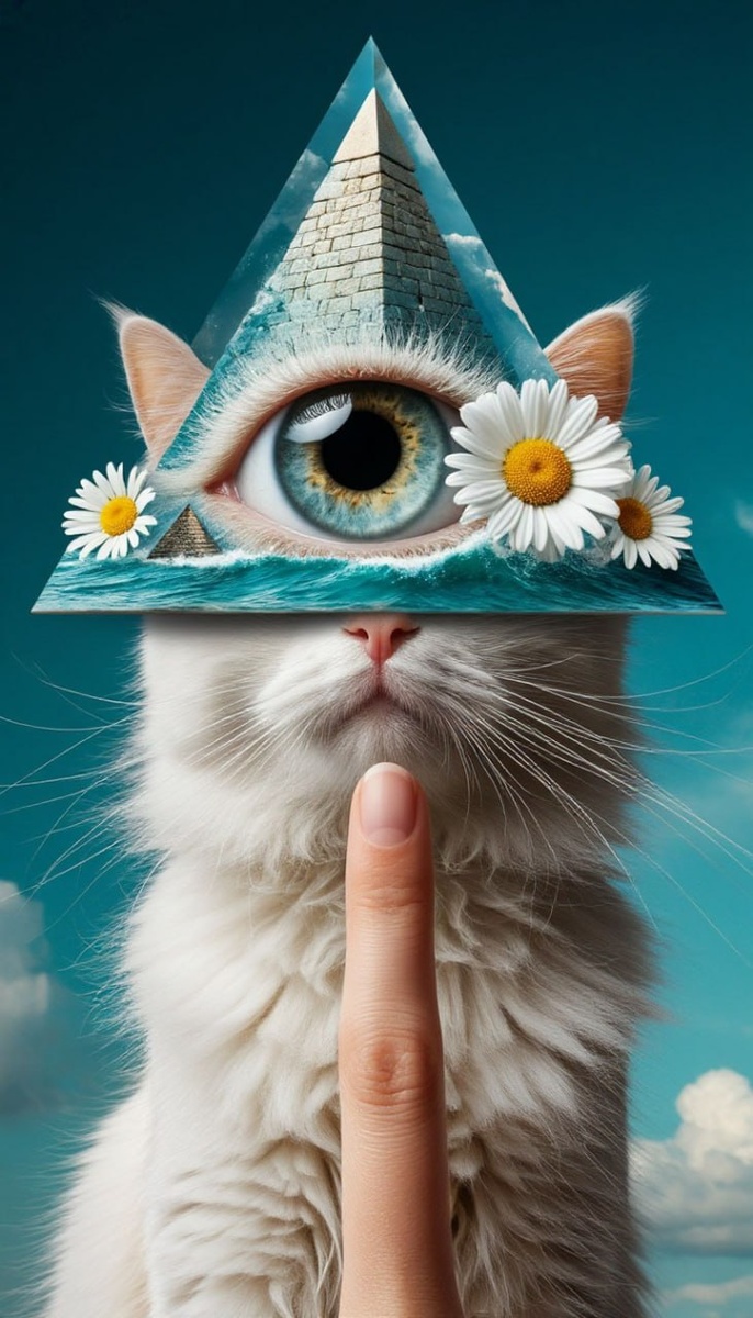 Бредовый вечер и не только. 💡Мой второй канал с тремя необычными промтами на каждый день =) Давно бредо-промтов не было. Да еще и со скрытым смыслом. Которого, конечно же, нет =) Промт тяжелый в плане получения странного, но хотя бы логичного и необычного изображения одновременно. Нужно крутить. Иногда долго ✏️Промт: hyperrealistic beholder-like reality pyramids on the fingertip nails, daisy ocean made of tower eye and white fluffy elongated cat, studio photo Участвуют: Шедеврум (первые две генерации). Чаще рисует пирамиду на голове кота, и это скучно. Но, иногда все же сходит с ума вместе с автором промта (кто бы это мог быть) и выдает неожиданное. Dall-E 3 (одна генерация). В принципе, проблемы генераций с ошибками, есть у всех сетей. Но, все сети выдают и необходимое. Dall-E не исключение. Recraft (одна генерация). Максимум, чего можно добиться в фотореализме. Imagen 4 (одна генерация). Разнообразен (с ним это все же бывает). Необычное получить легче, чем у предыдущих участ