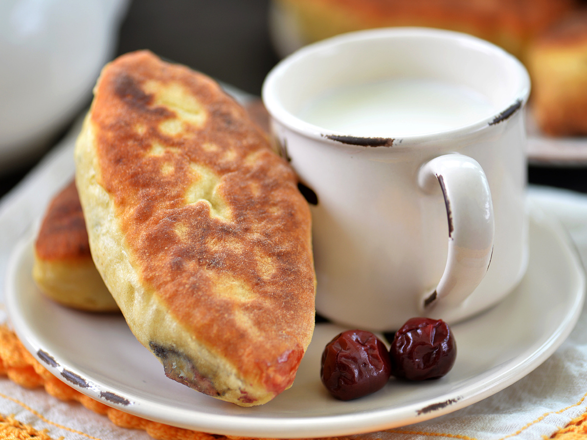 Если в пирожке есть начинка – она должна быть в каждом укусе. Не капля варенья, не сладкий след, а настоящая ягода! Мы берём свежую или замороженную вишню (не размораживаем до каши), не подмешиваем загустители. Просто даём ей сахар и выкладываем щедро на тесто – чтобы чувствовалась. А тесто делаем быстрое, без дрожжей – на кефире с содой – оно не липнет, не рвётся. И вишня в готовых пирожках остаётся внутри, не вытекает, не размачивает румяную корочку. Полный список ингредиентов – в конце⤵ Просеиваем в миску 350 г муки, добавляем 1 ч.л. соды, щепотку соли и 1 ст.л. сахара. Вбиваем 1 яйцо. В отдельной кружке слегка подогреваем 250 г кефира – не перегреваем, просто доводим до тёплого состояния. Вливаем кефир в миску, замешиваем тесто. Сначала будет липнуть – ничего страшного. Подсыпаем по чуть-чуть муки, пока не станет мягким, чуть тянущимся, но не резиновым. Накрываем и даём отдохнуть 10–15 минут. Важно: сода работает с тёплым кефиром сразу, без расстойки. Это и ускоряет процесс, и