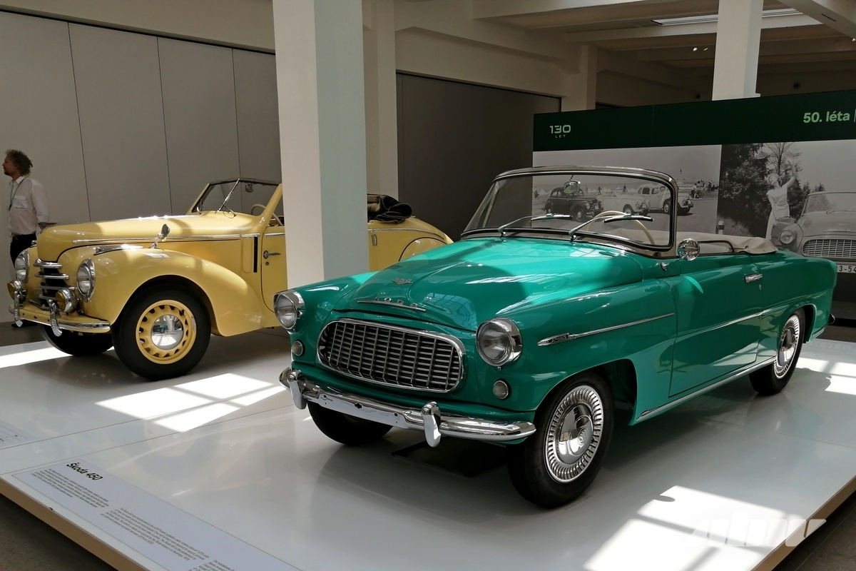 В 1978 году музейная коллекция пополнилась элегантным двухместным родстером Skoda 450. Первая цифра в названии автомобиля обозначала количество цилиндров, а вторая и третья – мощность (50 л.с.). В конце 50-х гг. было выпущено 1010 таких родстеров, две трети из которых отправили на экспорт, в том числе в США и Великобританию.
