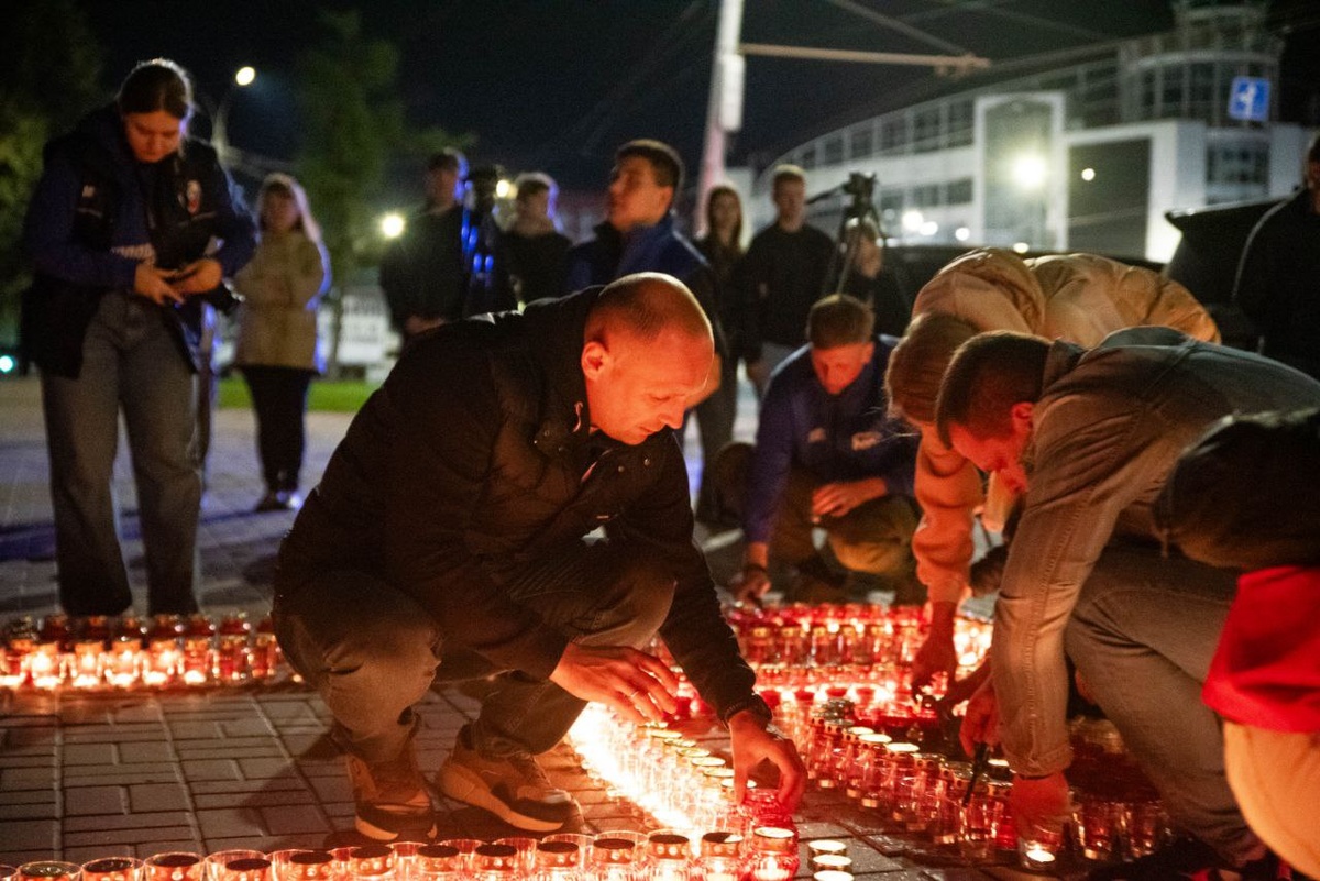 #прямосейчас на территории Мемориала павшим в годы Великой Отечественной войны проходит международная акция «Огненные картины войны»🕯 В ней принимают участие врио губернатора региона Александр Хинштейн, и. о. главы города Сергей Котляров, сотрудники областной и городской администраций, волонтёры, студенты и все неравнодушные к судьбе нашей страны люди. 22 июня, в памятную дату начала вероломного вторжения нацистской Германии и её союзников на территорию Советского Союза, по всей стране партия «Единая Россия» организует эту акцию. Участники с помощью горящих свечей создают уникальные световые картины на улицах и площадях городов, посвящённые героизму и памяти тех трагических событий. Мероприятие направлено на сохранение исторической памяти, воспитание патриотизма и единства народа в честь великой Победы. — Сегодня особенный день, когда каждый житель нашей страны должен на минуту остановиться и отвлечься от повседневной суеты. Важно задуматься о тяжёлых и трагических днях Великой От