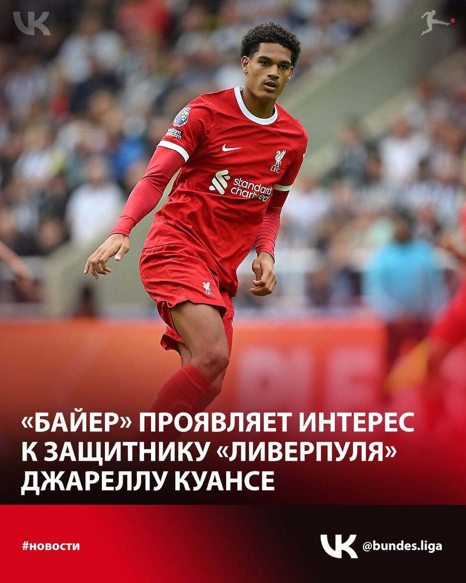 ⚡ «Байер» интересуется защитником «Ливерпуля». Об этом сообщает The Times. По информации источника, мерсисайдцы оценивают английского футболиста в £ 40 млн (€ 46,8 млн). Подчёркивается, что леверкузенский клуб предпримет попытку подписать Куансу за более низкую сумму. Трудовое соглашение 22-летнего игрока с клубом рассчитано до лета 2029 года ✍ Согласно информации, представленной на портале Transfermarkt, рыночная стоимость футболиста составляет € 20 млн.