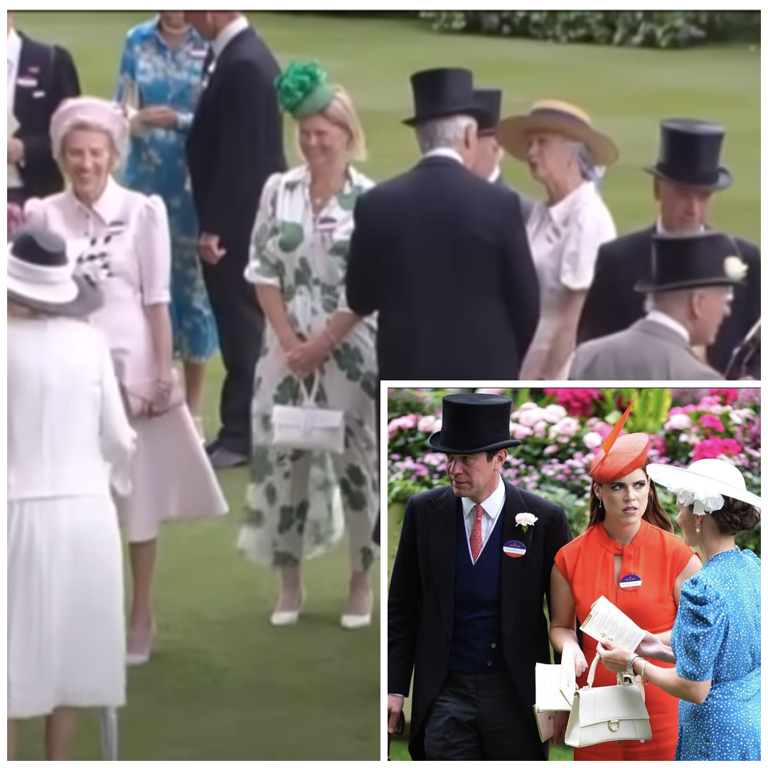 Во втором экипаже едут принцесса Евгения с мужем Джеком Бруксбенком и недавно включенный по решению королевы в список королевских тренеров Эд Уокер с женой Камиллой. По лицу Евгении видно, что компания ей не нравится.