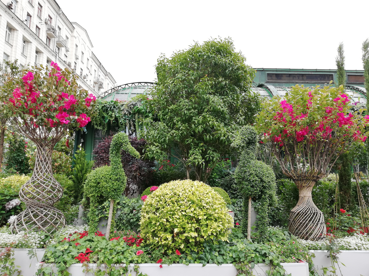 23.06.2025 В любое время года Тверская площадь восхищает своими экспозициями. Ещё свеж в памяти весенний "Пасхальный дар", а теперь радуют глаз летние цветочные композиции. Фотографии можно делать на каждом шагу. И все они будут яркими, красочными. Барбарис чудо как хорош! Крупнолистные гортензии прекрасны. Петуний каких только расцветок не встретишь. Постоянно пользуюсь умной камерой, чтобы узнать название незнакомых мне цветов. А какая герань интересная. Клематис в обнимку с подстриженной туей. На входе встречает и провожает посетителей вот такой страж, сфотографировала его с разных сторон, а название так и не узнала. И еще что- то из хвойных и причудливо растущих. Мне нравится Тверская площадь. Она не разочаровывает никогда.