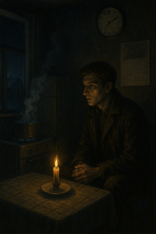 Электричество отключили без семнадцати семь. Погасла лампочка на кухне. Шумный, трясущийся холодильник резко, пронзительно взвыл и после непродолжительных судорог заглох. В темноте горели ровные язычки голубого пламени — на плите стояла кастрюлька, в которой бурлила вода. Варилась картошка, наполняя кухоньку паром и ароматом половинки лаврового листика, брошенной в кипяток. Настенные часы отбивали секунды звонкими стрелками, шумела кипящая кастрюлька, ей вторил еле различимый гул газовой трубы. Комната замкнута была в цикл, в круг, в ритм резких стрелок. Электричество отключили, но Сережа не встал со скрипучего стула. Привык к тишине и резкой, резко и неожиданно наступавшей, привычной к резкости — тьме. Посмотрел в маленькое окошко, различая силуэт соседской крыши. Сугробы отражали невидимый свет, вычерчивая линии в темноте зимнего вечера. Бросил взгляд выше — над крышей, с которой ветер сгонял неуложенный снег, не найти звезд. В соседском окне мелькнул огонек, кто-то нашел свечи в кухонном шкафу, прямо за забытой с прошлого года пачкой гречки. Сережа сидел неподвижно, он ждал — когда сосед скроется со свечой в другой комнате, когда сварится картошка, когда вспомнит, где спрятал свои огарки с прошлого раза. Может быть, в том же шкафу за той же забытой пачкой. Ждал.