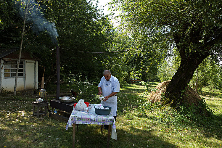 У леса, на опушке, в старенькой избушке, зимой и летом хранит свой нехитрый скарб дядя Шахбалат. Но это он только по ночам хранит печку, пару тазов, самовар, стол да несколько не новых чашек. А по утрам он выносит всё своё добро на свежий воздух, наливает в самовар свежую воду из ручья, разводит огонь и ждёт, когда внук принесёт сахар. Ему, вообще-то, ничего больше покупать и не надо, кроме сахара. У него есть запас грецких орехов, собранных в ореховой роще, здесь, неподалёку. В Габалле, знаешь, какие орехи вкусные растут? Только эти орехи вечером, когда делать будет нечего, надо поколоть, заготовить на утро. Тогда утром не будет почти никаких забот.