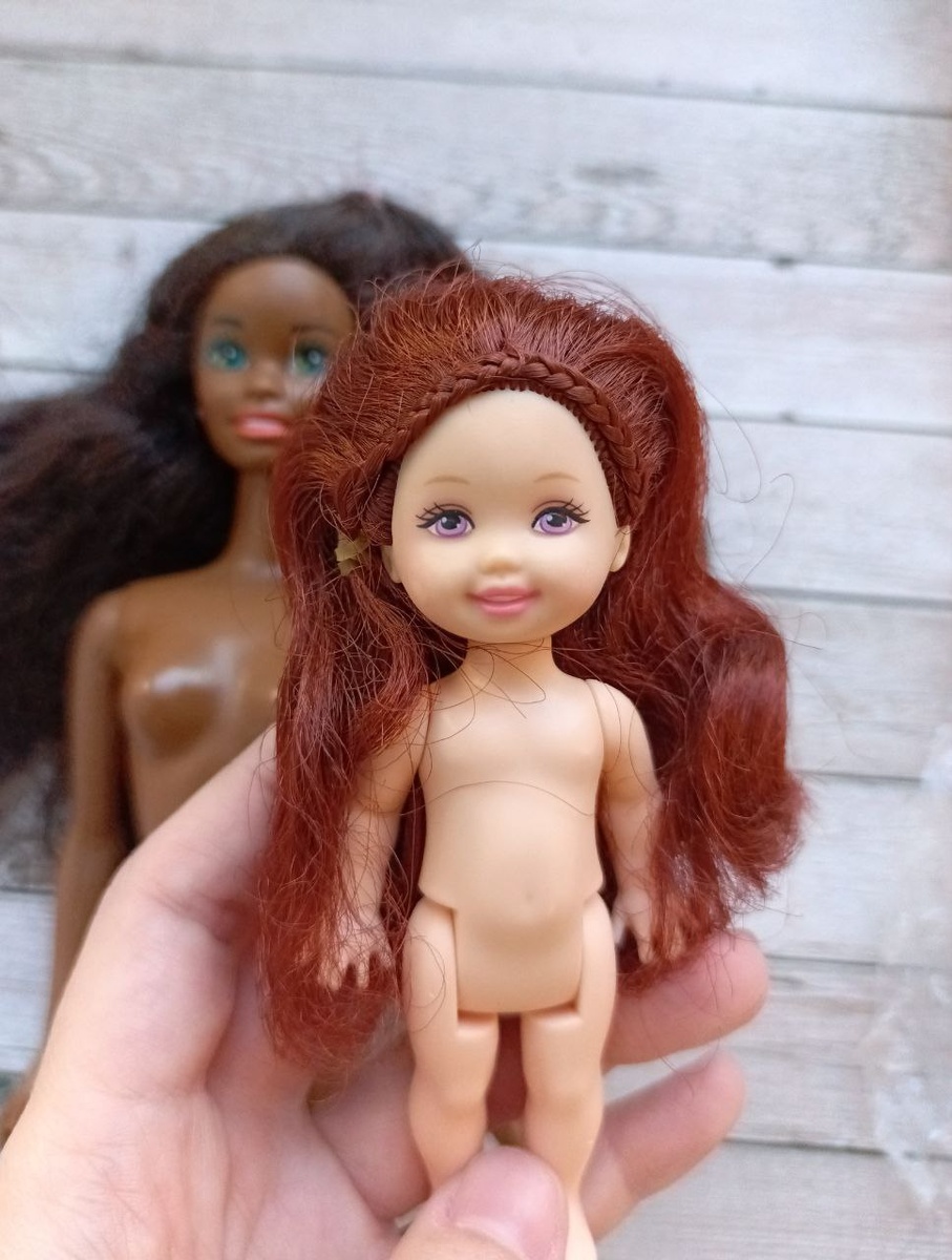 Малышка Мелоди из серии Career Day! 2001 года выпуска приехала ко мне в мае. В этом смысле ей невероятно повезло - не пришлось ждать долго того, чтобы у меня дошли до неё руки. Мелоди - одна из многочисленных подруг младшей сестры Барби Келли. Покупка вышла несколько спонтанной, хотя я всегда засматривалась на этот выпуск из-за красивых сиреневых глаз девочки. Все вы знаете, как я люблю этот цвет глаз у кукол)) Тем не менее целенаправленно её искать я бы, наверное, не стала. У меня и так уже куча девочек формата Келли. Куда больше! Но тут Мелоди повстречалась в продаже у одного из моих любимых продавцов, и я в итоге не устояла. В целом кукла оказалась в сносном состоянии. Волосы смочалились, но зато без пустых лунок и большого количества оборвышей. Даже косичка от изначальной причёски сохранилась. По традиции почти все мои Келли - с какими-то дефектами. Так что и тут нашлась ложка дёгтя - на левой щеке сильно потёрт румянец. Фото масштаб проблемы, увы, почти не передаёт. Я решила с