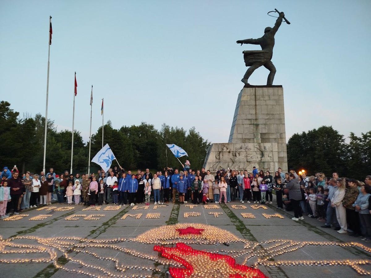 Огненные картины войны. Перемиловская высота. 21 июня прошла акция, приуроченная ко Дню памяти и скорби. В честь павших героев были зажжены тысячи свечей, из которых выстроена мемориальная композиция «Могила Неизвестного Солдата» с надписью: «Подвиг твой бессмертен». Почему фразу С.В.Михалкова "Имя твоё неизвестно, подвиг твой бессмертен", начертанную на могиле Неизвестного солдата в Москве, наполовину укоротили - неизвестно. А у подножия памятника, у стелы со стихами Р. Рождественского молодежь отмечала летнее солнцестояние, сидела у костра и слушала песню В.Цоя "Хочу перемен".
